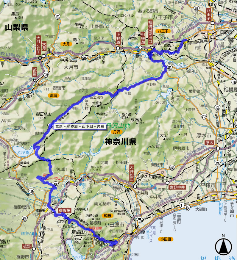 高尾山で安全祈願の後、大垂水峠を抜け、相模湖。