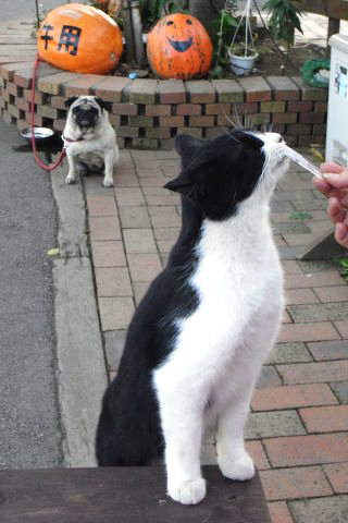 (=^・^=)ちゃんのお出迎えに、上機嫌のあややさん。