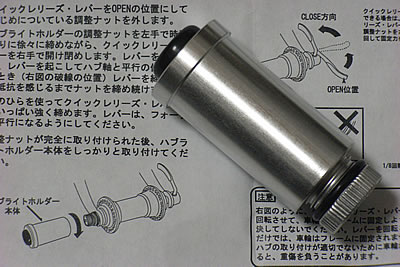ライトを使わない時は、ハブライトホルダーをはずし、取付け用ナットは通常のクイックレリーズのナットとして使える優れものです。