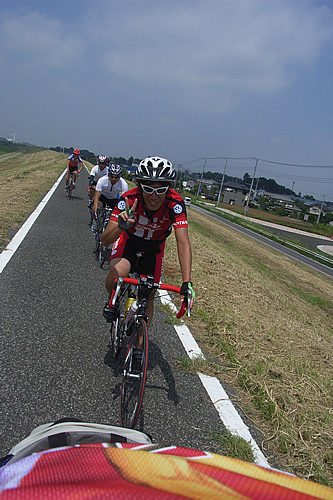 乗り遅れた。。。うーっ、風の抵抗が・・・車間がつまらないなぁ・・・追いつけないか。