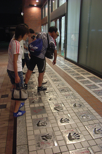 食後は、浅草公会堂の芸能人の手形を見て、雷門へ。