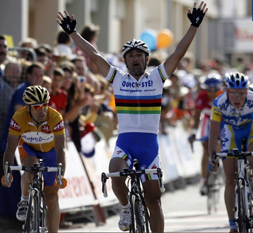良い位置につけたパオロ・ベッティーニ(クイックステップ)が後方から追い込み先頭へ。オスカル・フレイレ(ラボバンク)も追いすがるが、届かず。