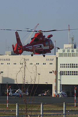 小さく細長い公園だが、ヘリコプターの離発着が間近に見れます。