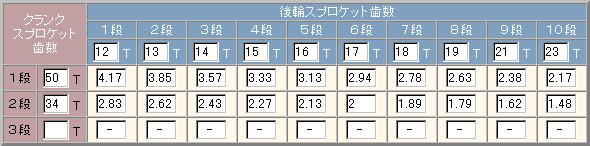 こんな感じのギア比になりました。。。