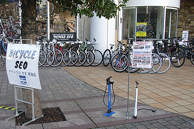 外に無料の空気入れがあるところが微笑ましいです。