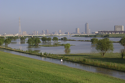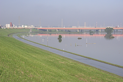 先頭交代しながら走ってみますが、慣れない土手上走行、橋に阻まれ立ち往生。