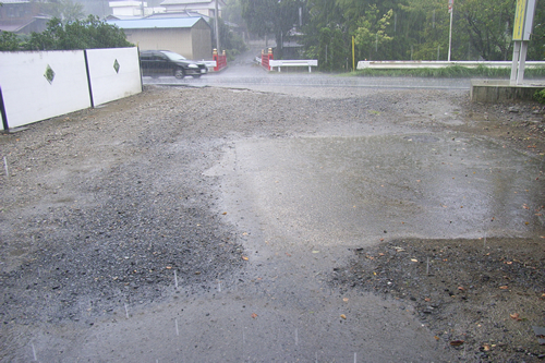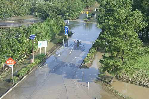 ところが、冠水の為立ち入り禁止の札を見て(漢字読めるんだ・・・というかヤバイと感じただけか・・・)NGとの意思表示。