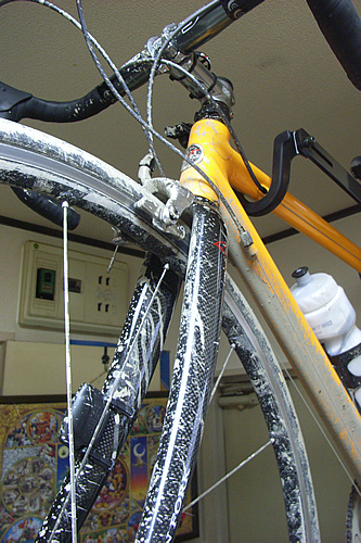もうバイクも泥だらけ、本人もドブ臭いしでテンション下がりまくりです。
